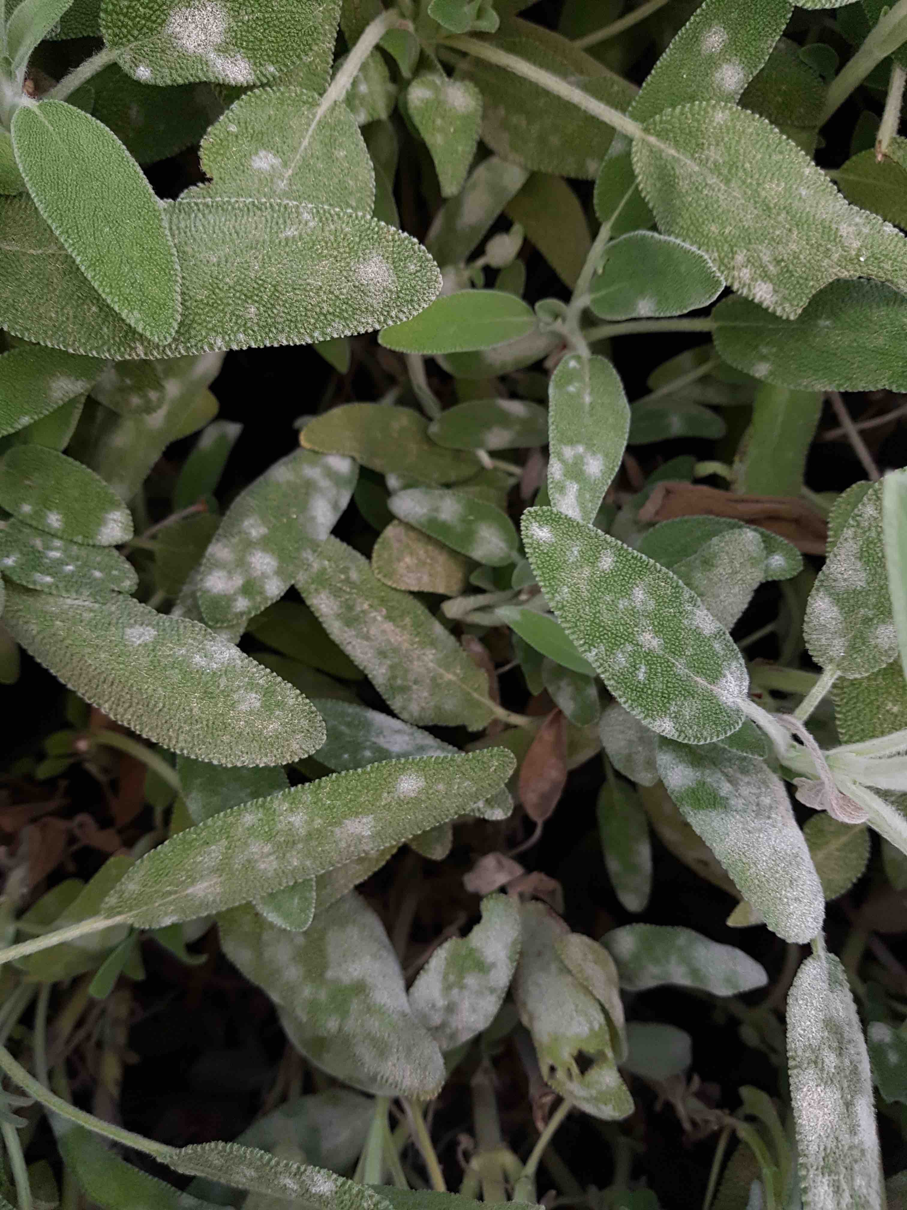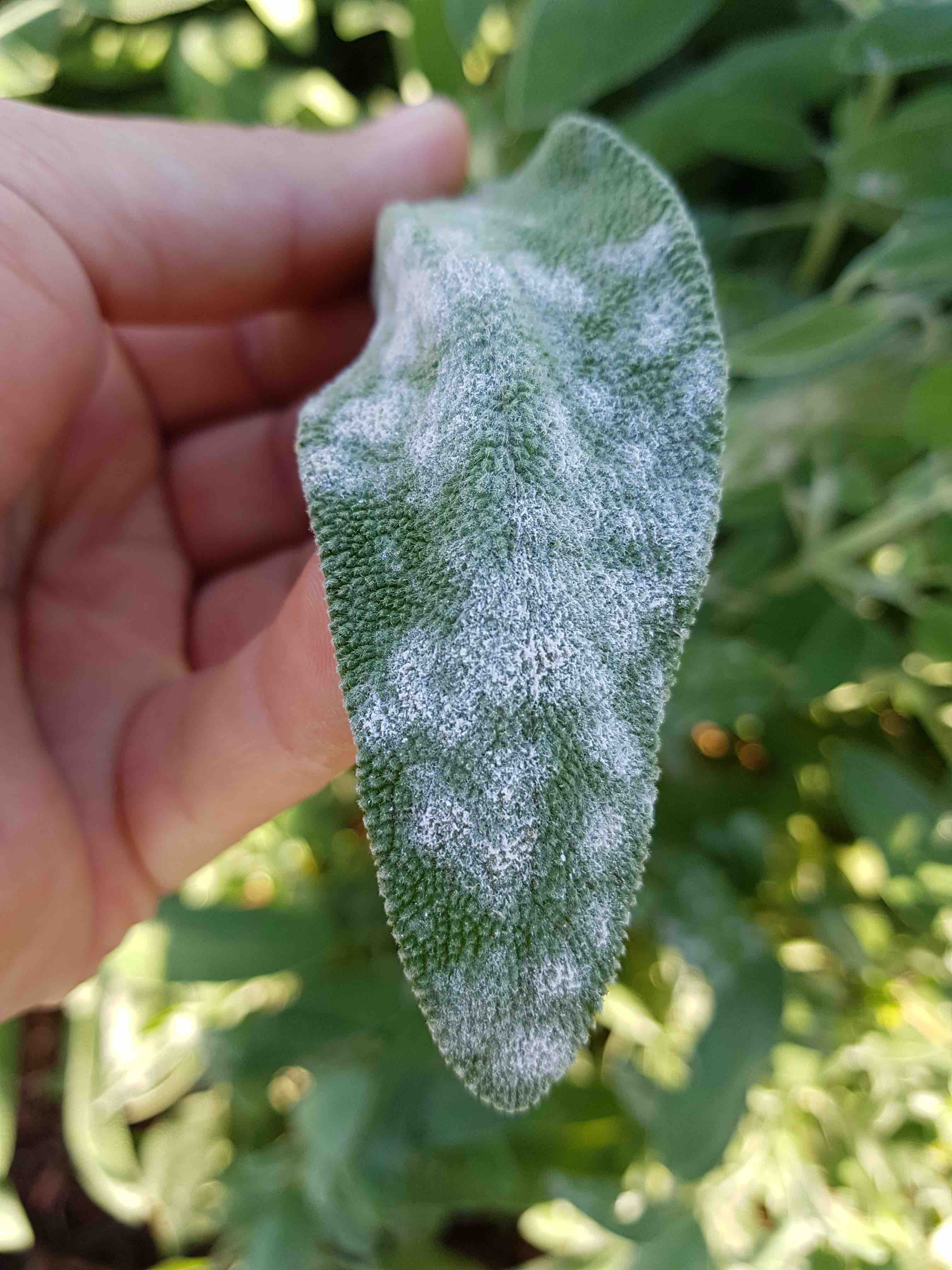 Powdery mildew of sage is a fungal diseases with worldwide dispersion that usually appears on the surface of leaves as white or grayish spots with a powdery-like texture, hence the name.